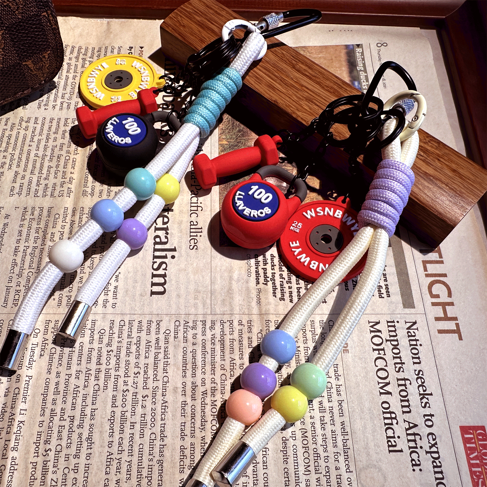 Home / Products / Key Chain / 3piece Set Wsnbwye Fashion Colored Rope Knot Beaded Kettle Beaded Pendant Dumbbell Keychain Barbell Piece Hanging Decoration Three-in-one Set Keychain Weightlifting Fitness for Gift Back Packaging Orn