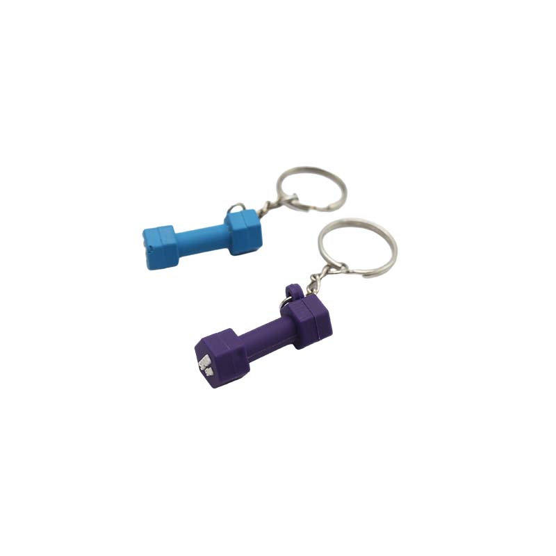 Mini Pvc Barbell Keychain Sport Metal 3D Rubber Keychain