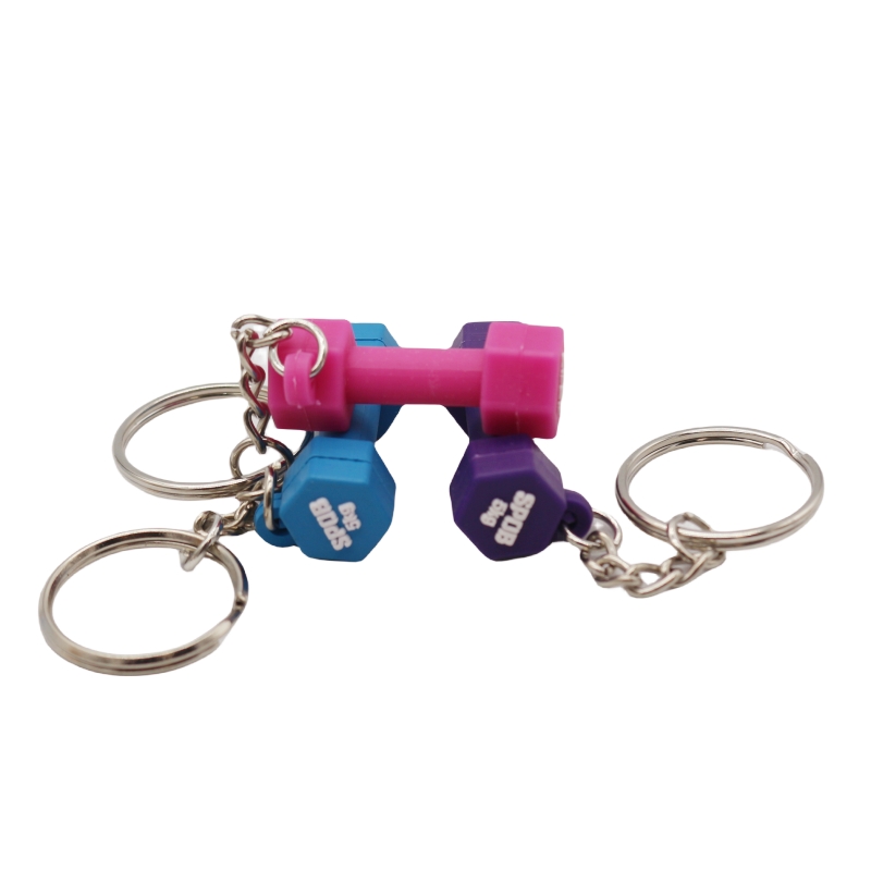 Mini Pvc Barbell Keychain Sport Metal 3D Rubber Keychain